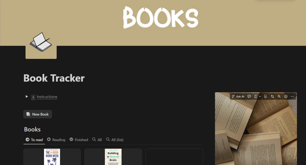 - ποΈ Book Database β Track finished, currently reading, and to-read books with status tags