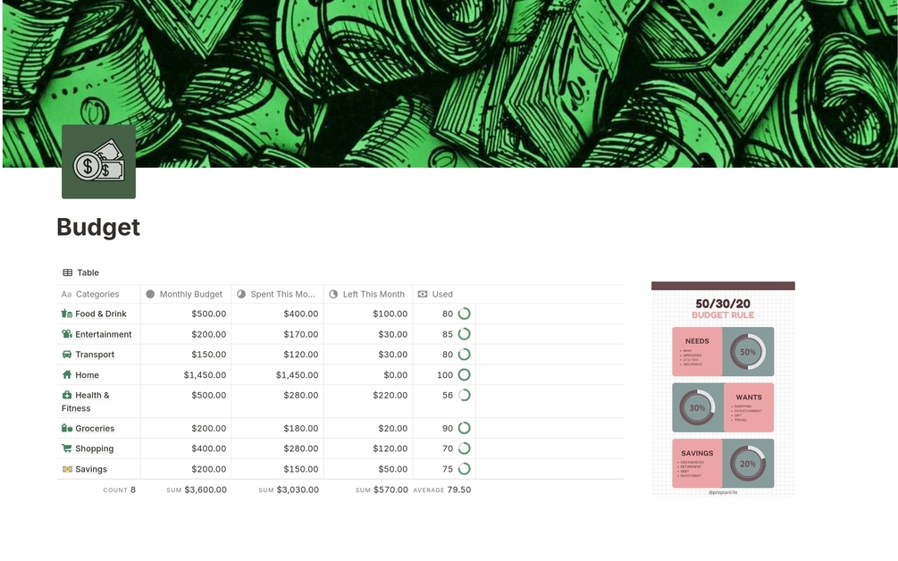 ✨ Minimal & Beginner-Friendly Notion Budget Template
